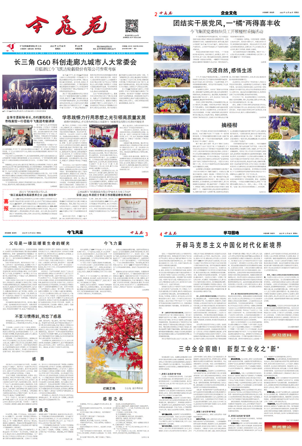 长三角G60科创走廊九城市人大常委会领导一行莅临浙江今飞凯达轮毂股份有限公司参观考察学思践悟力行用思想之光引领高质量发展一一曲靖市委副书记、市长李先祥莅临云南富源今飞轮毂制造有限公司讲授专题党课金华市委副秘书长、市档案局局长、市档案馆馆长陈艳艳一行莅临今飞集团考察调研云南富源今飞轮毂制造有限公司“童水光专家工作站”荣获云南省科学技术协会颁发的2023年度院士专家工作站结题验收优秀站点浙江今飞机械有限公司入选“浙江省高成长高新技术企业200强榜单”团结实干展党风,一“橘”两得喜丰收丨今飞集团党委组织员工开展椪柑采摘活动摘椪柑沉浸自然,感悟生活父母是一缕温暖着生命的暖光今飞力量不要习惯得到,而忘了感恩感恩遇见感 恩感恩之名开辟马克思主义中国化时代化新境界三中全会前瞻! 新型工业化之“新”