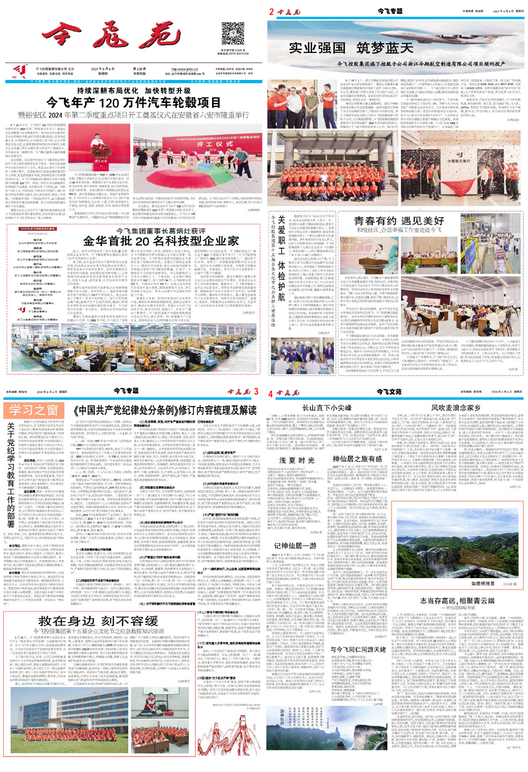 持续深耕布局优化 加快转型升级 | 今飞年产120万件汽车轮毂项目一一暨裕安区2024年第二季度重点项目开工奠基仪式在安徽省六安市隆重举行今飞集团董事长葛炳灶获评金华首批20名科技型企业家实业强国 • 筑梦蓝天丨浙江今翔航空制造有限公司项目顺利投产关爱职工 • 体检护航 | 今飞控股集团第十五届企业文化节——企业职工健康体检青春有约 遇见美好I和悦社区、合圆幸福工作室走进今飞关于党纪学习教育工作的部署救在身边 刻不容缓丨今飞控股集团第十五届企业文化节之应急救援知识培训风吹麦浪念家乡长山直下小尖峰志当存高远,相聚青云端——神仙居探秘有感浅 夏 时 光与今飞同仁同游天姥记神仙居一游神仙居之旅有感游神仙居