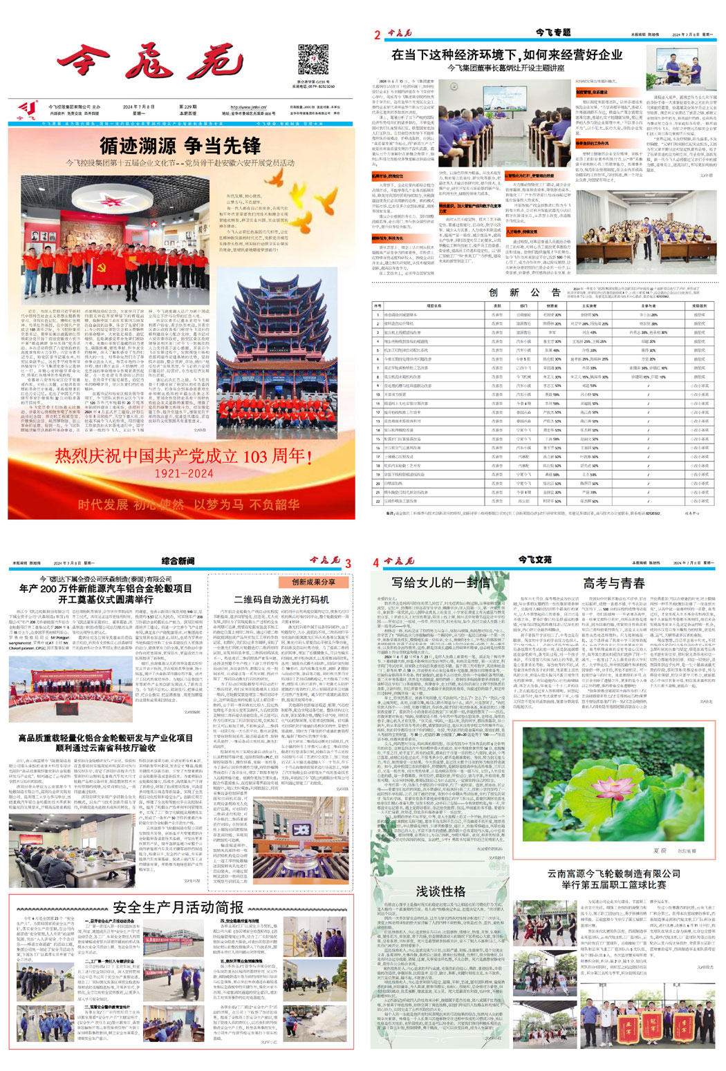 循迹溯源 争当先锋 丨 今飞控股集团第十五届企业文化节——党员骨干赴安徽六安开展党员活动在当下这种经济环境下,如何来经营好企业——今飞集团董事长葛炳灶开设主题讲座创 新 公 告今飞凯达下属全资公司沃森制造(泰国)有限公司 丨 年产200万件新能源汽车铝合金轮毂项目开工奠基仪式圆满举行云南富源今飞“高品质重载轻量化铝合金轮毂研发与产业化”项目顺利通过云南省科技厅验收二维码自动激光打码机2024年安全月活动简报高考与青春写给女儿的一封信浅谈性格云南富源今飞轮毂制造有限公司举行第五届职工篮球比赛