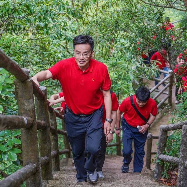 6月14日,为深化第十六届企业文化节内涵,强化党员先锋模范作用,筑牢基层战斗堡垒,今飞控股集团党委吹响奋进号角。本次由集团党委书记葛炳灶亲自带队,集团各支部共80余名党员赴“金华八婺 第一峰”----武义牛头山,开展“党建聚能,奋进同行”主题党建活动。党员们统一着装红色体恤,队伍在绿水青山间锤炼党性,凝聚发展力量。