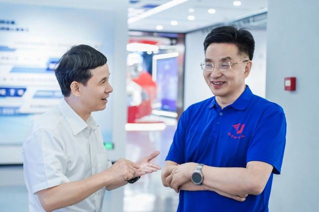调研组首先参观了今飞总部大楼的企业历史展厅。展厅内陈列的今飞历史农业器具、老旧工业设备等展品,生动还原了今飞从地方农机小厂起步,逐步成长为如今多元产业、全球布局的集团企业的发展历程。从最初的艰难创业,到不断创新突破,今飞60多年的发展脉络在一件件展品中得以清晰呈现,让调研组对今飞的发展历程和企业文化有了更直观、深刻的认识。危辉星副院长及调研组成员认真听取了葛炳灶董事长关于企业发展历程、重要节点和核心精神的介绍,对今飞深厚的历史积淀及在发展中展现的坚韧不拔、持续创新精神给予高度赞赏。