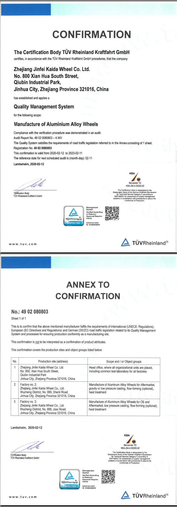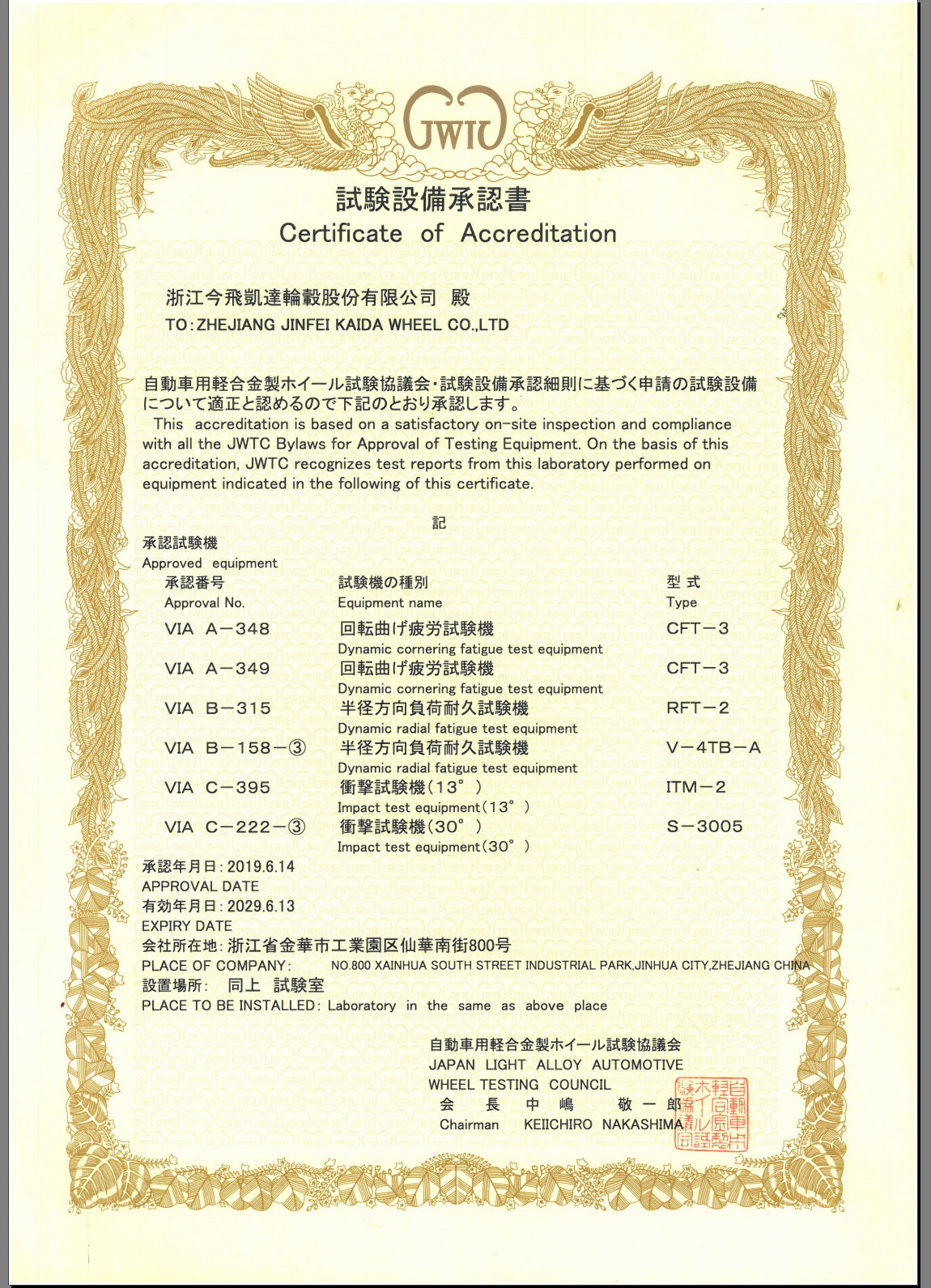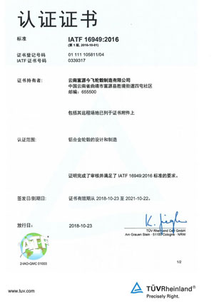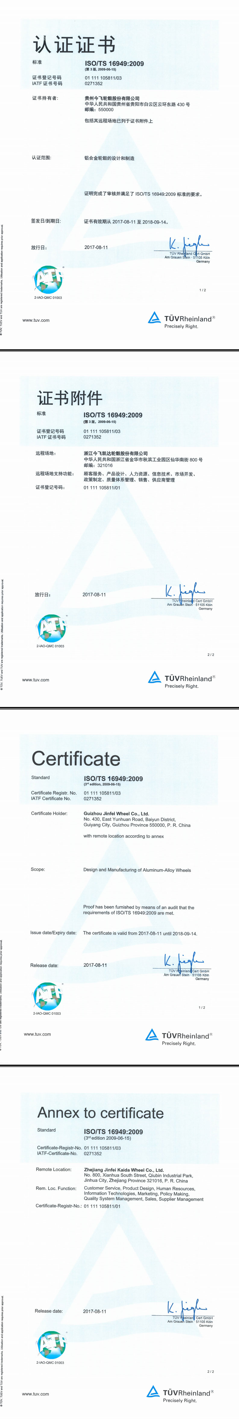 今飞控股集团始终视产品质量为生命, 以体系为依托,实现产品零缺陷,逐步确立了“今飞”铝合金车轮国际品牌地位。