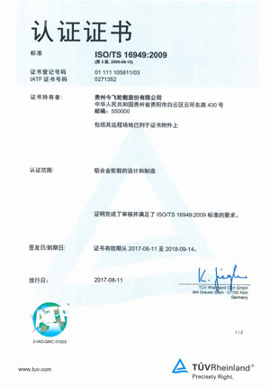 TS16949今飞凯达夹溪路工厂质量管理体系认证证书